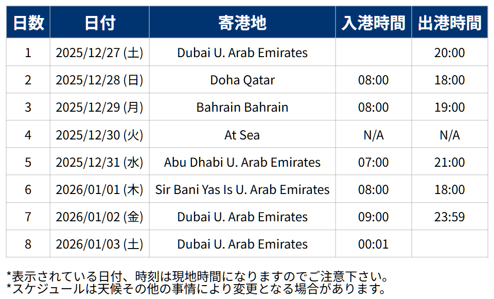 • MSCエウリビア ドバイ発着 アラビアクルーズ