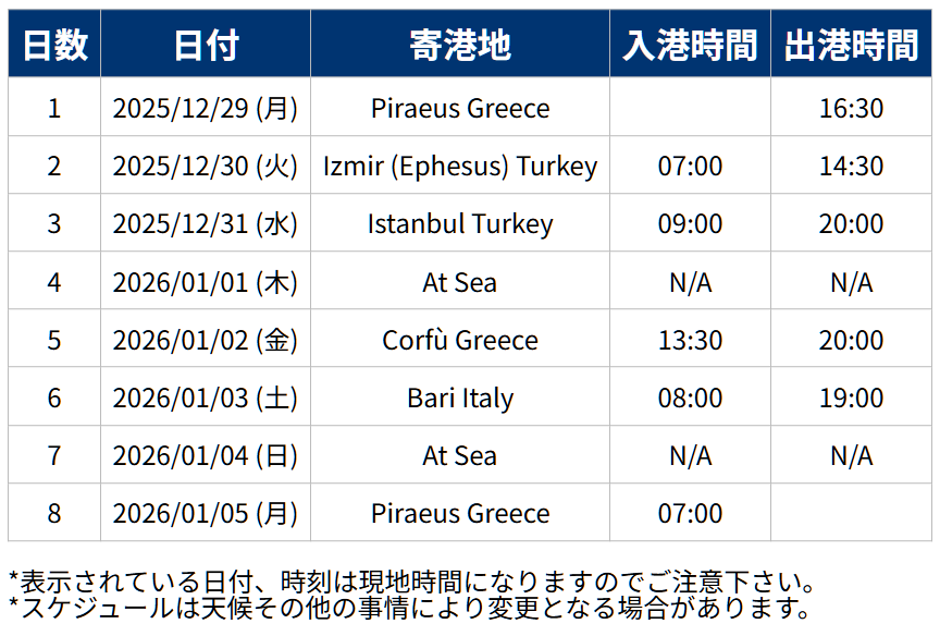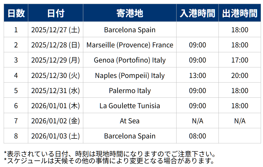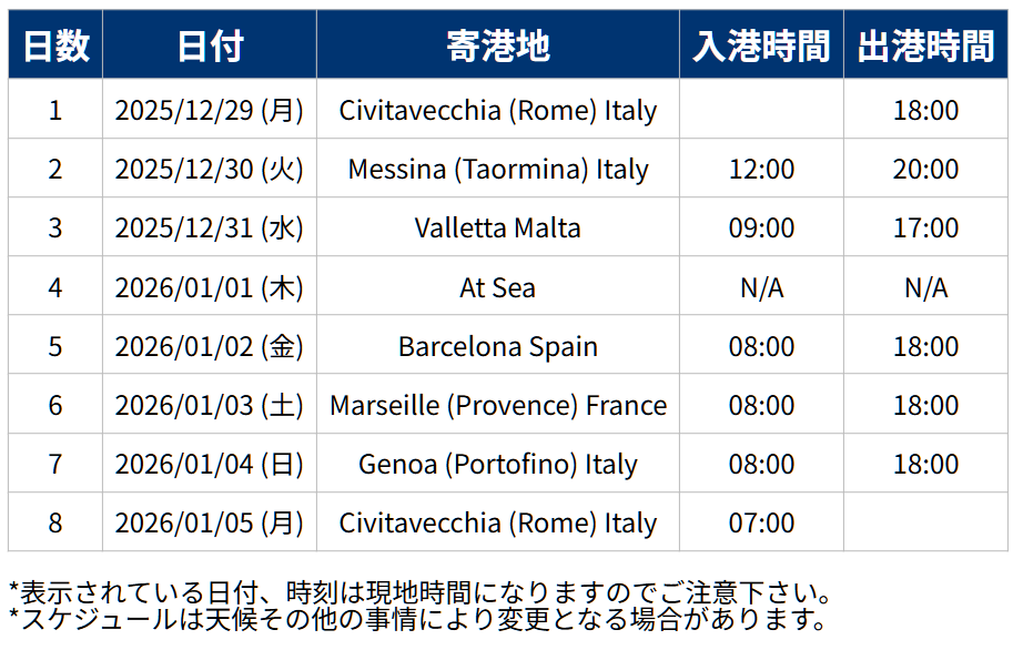 → 最新鋭の大型客船で過ごす華やかな地中海の年末