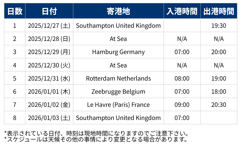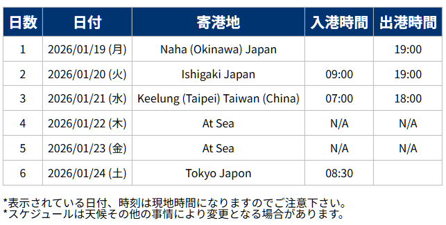年明けからのクルーズは1月2日、1月7日、1月11日、1月19日出航のクルーズにスペシャルプロモーションが適用され、通常よりも更にお得にクルーズをお楽しみ頂けます。