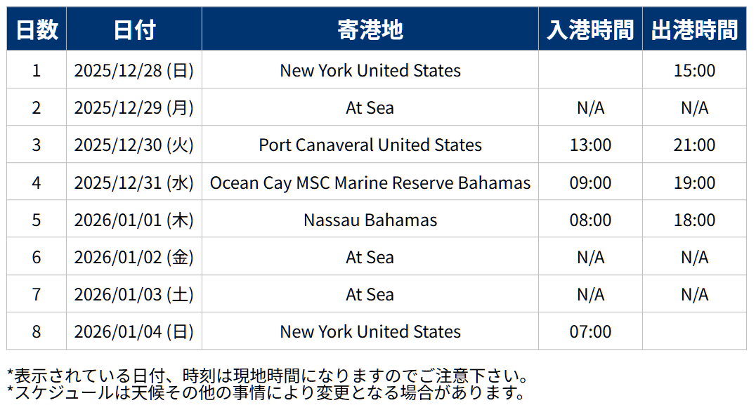 • MSCメラビリア ニューヨーク発着 カリブ海クルーズ