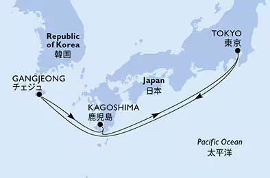 MSCベリッシマが発着や訪問する日本、韓国、台湾、中国など、アジア太平洋の主な寄港地の紹介です。