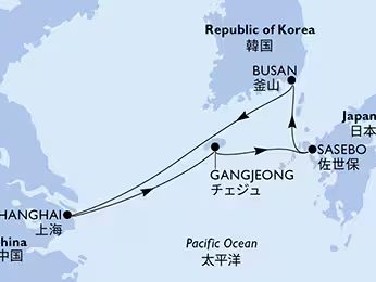 この夏の上海クルーズは上海を発着地として、船内での時間をじっくりと楽しめる那覇のみを訪れる航路や、韓国の釜山を訪れ、更に済州島(韓国)または福岡、欲張って釜山と済州と佐世保と、楽しみ方に合わせて違った航路をお選びいただけます。