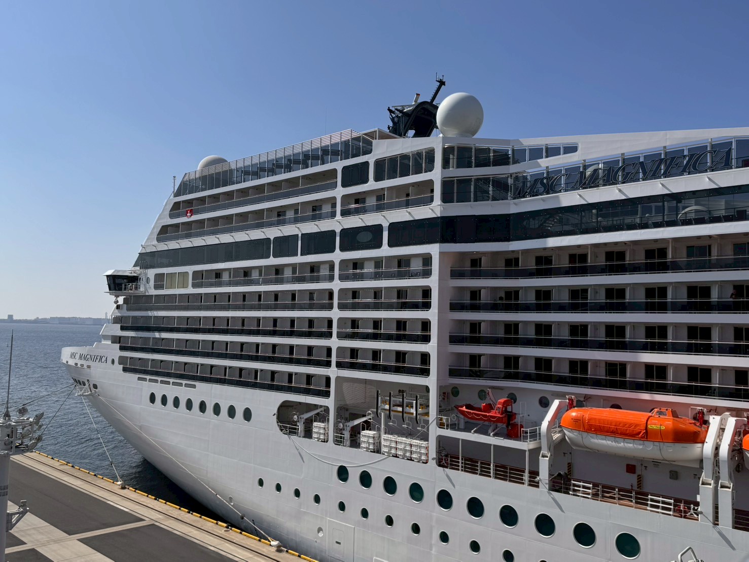 2025年12月に大規模な改修が終わり、MSCヨットクラブの加わったMSCマニフィカがワールドクルーズの寄港地として3月23、24日と東京国際クルーズターミナルに停泊しました。