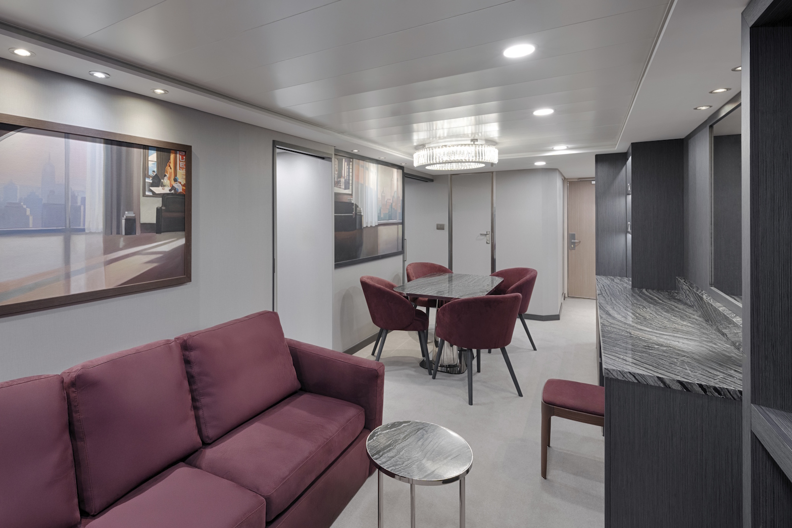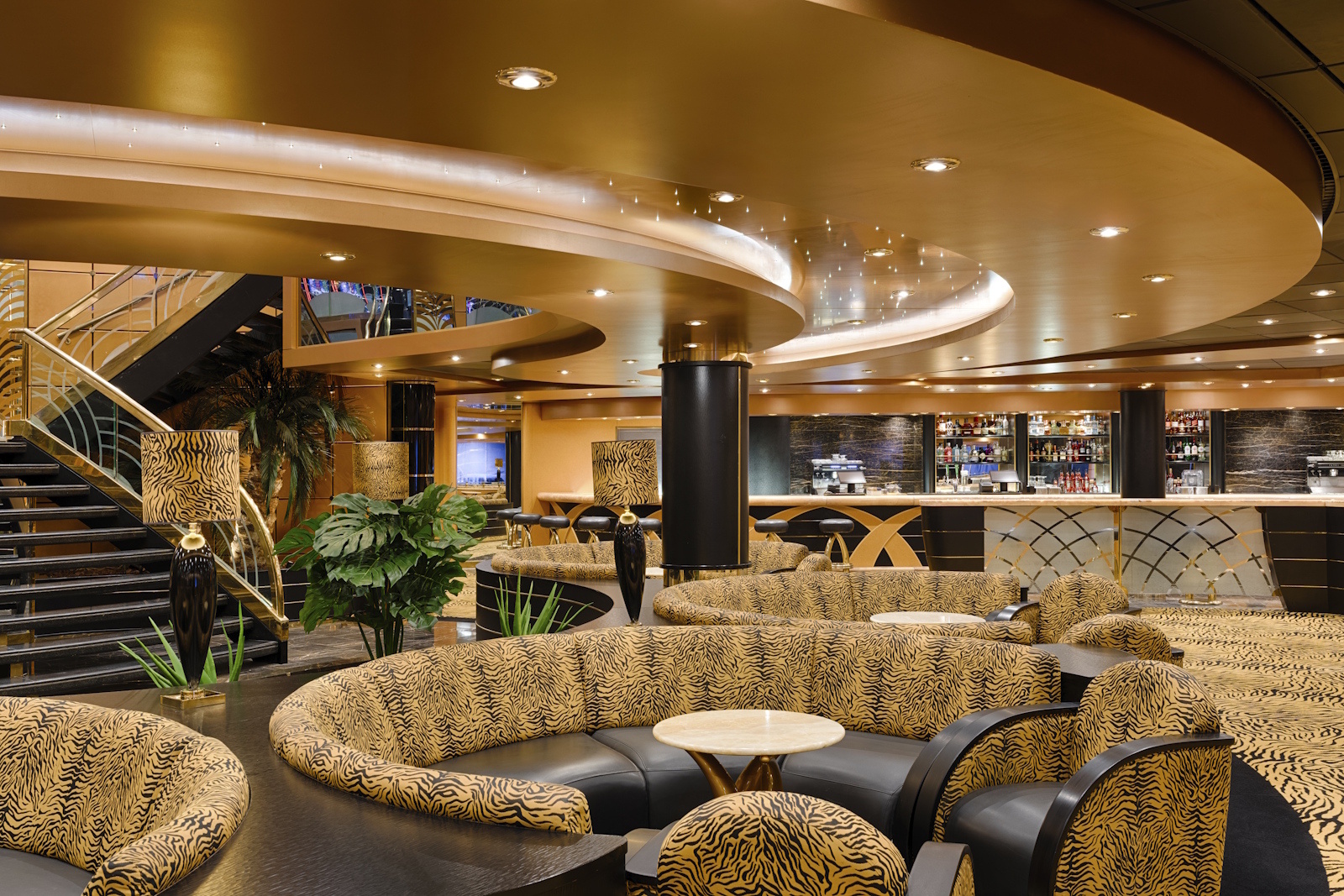ムジカクラスの先陣を切ってMSCマニフィカに新設されるヨットクラブ。ヨットクラブのロビーとなるトップセールラウンジはスタイリッシュで洗練された空間に仕上がっていました。