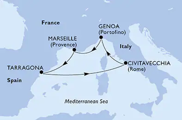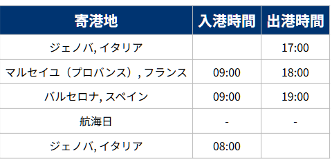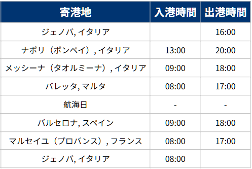 2026年10月17日、21日、25日ジェノバ発着4泊5日クルーズ
