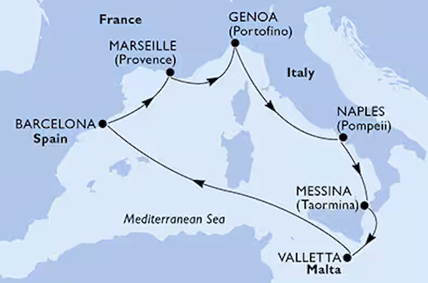 2026年11月8日、15日、22日、29日ジェノバ発着7泊8日クルーズ