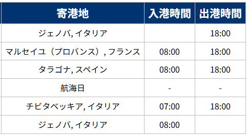 2026年10月29日、11月3日ジェノバ発着5泊6日クルーズ