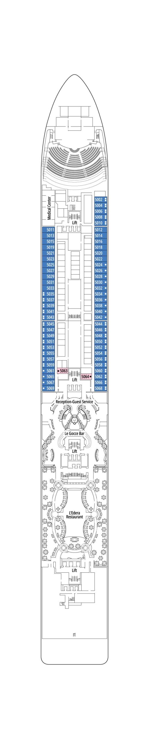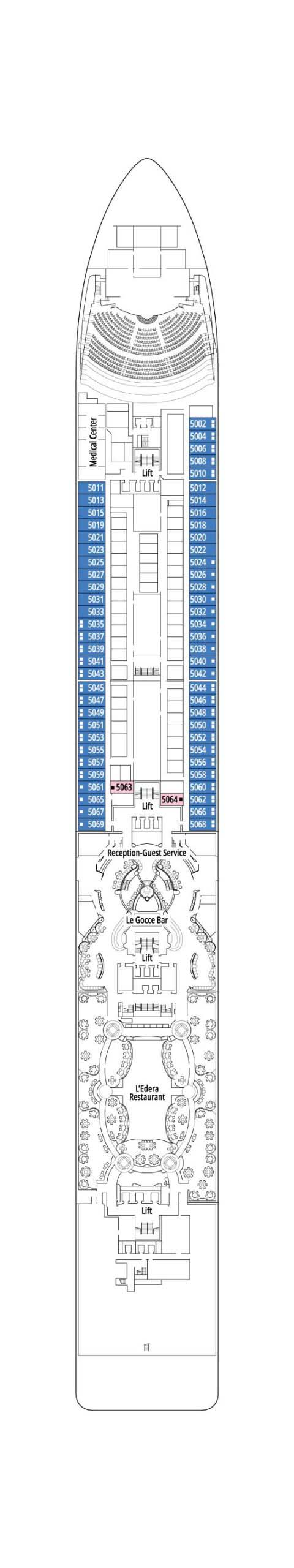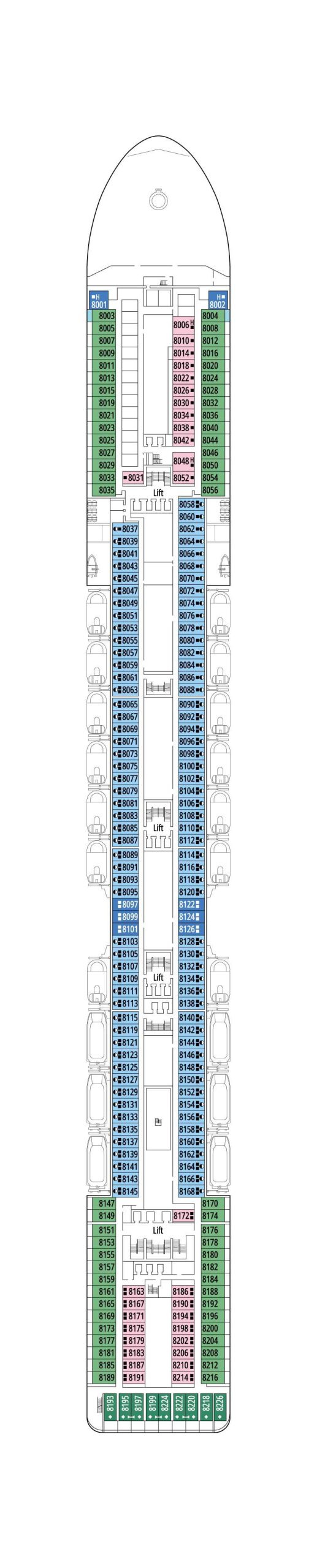 デッキプランをチェックして理想のキャビンを見つけましょう。IMAのオンライン予約では、以下と同じデッキプランを確認しながら部屋を選ぶ事ができます。