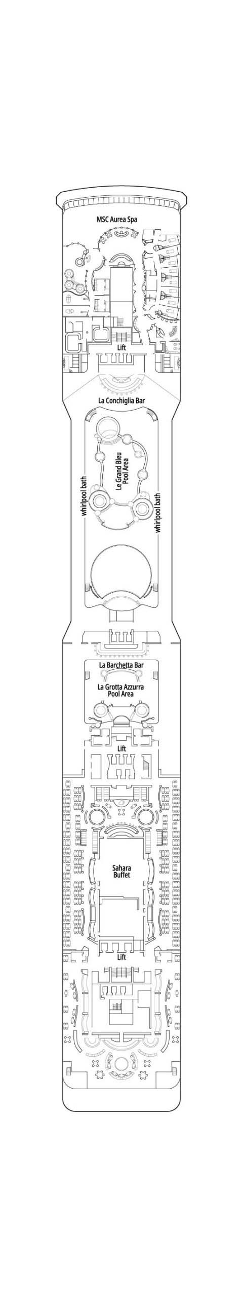 船内のレジャー施設には、ソルトルーム、クナイプ療法、バイタリティプール、エモーショナルシャワーを備えたリニューアルされたMSCアウレアスパがあります。さらに、屋外プール複合施設と開閉式屋根付きの屋内プールがあり、天候に関係なく楽しめます。その他にも、テニスコート、バスケットボールコート、ビリヤード、最新鋭のハイテクジム、ジョギングコースも完備しています。