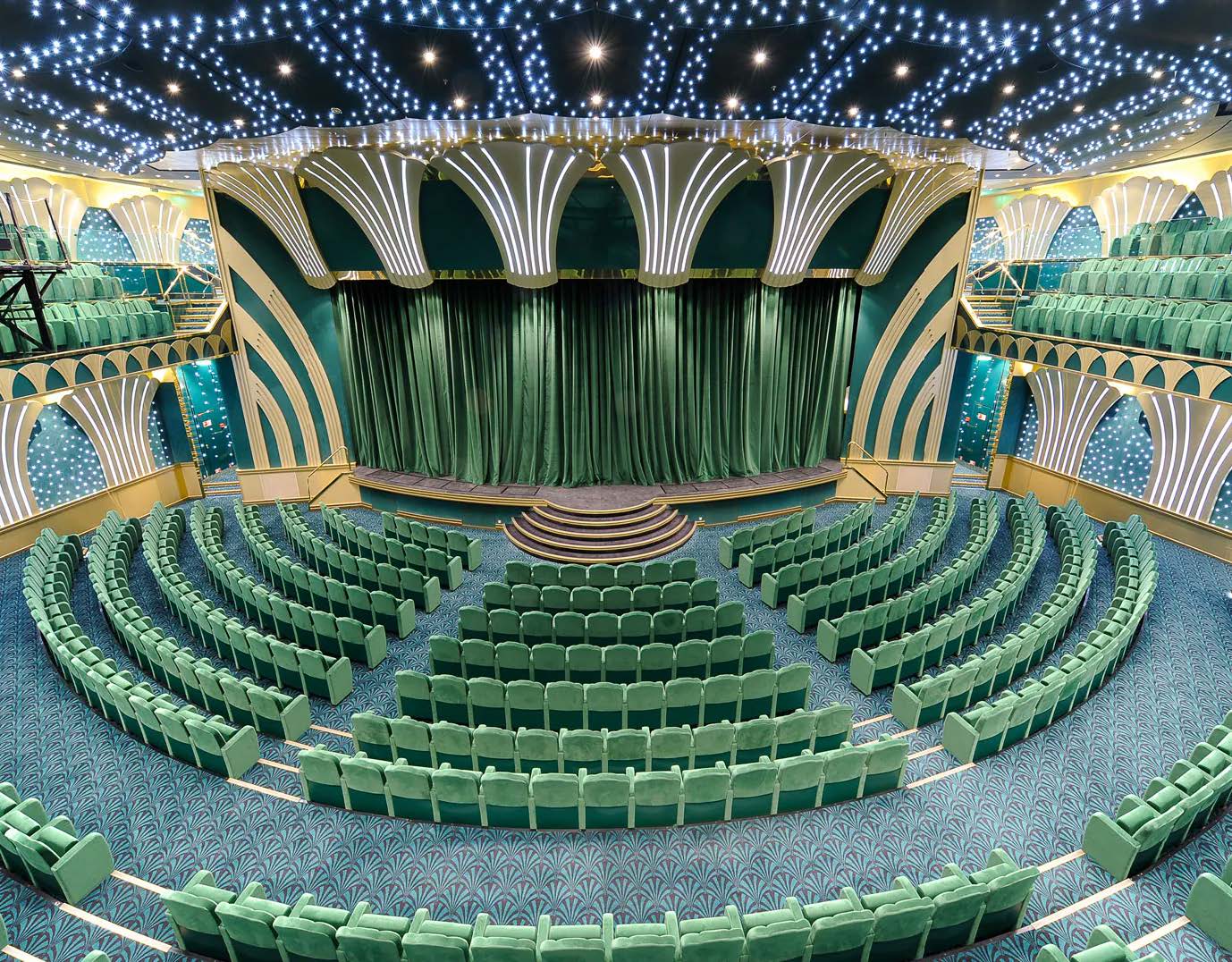 夜のエンターテイメントは多彩で、壮大なアトランティックシティカジノ、4Dシネマ、1,200席の劇場、バーラウンジでのライブミュージックなどが楽しめます。もっと静かな夜を過ごしたいなら、デッキに出て星空の下でロマンチックな一杯を楽しむのも良いでしょう。
