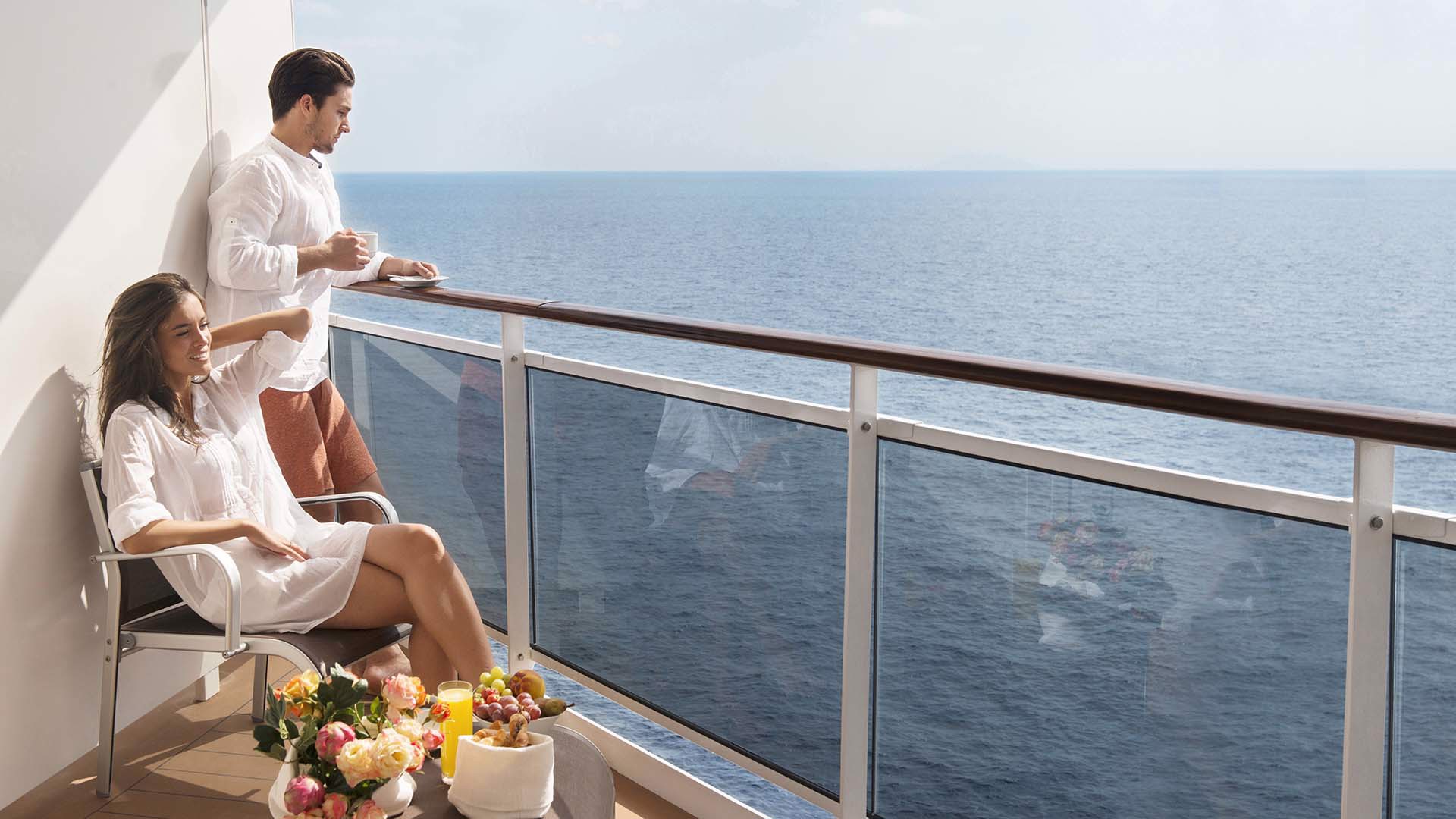 航路や時期によっても異なりますが、船内は空調が利いて冷えることもありますので、ジャケットやストールなど羽織るものを準備しておくと安心かつ、お洒落な演出に!